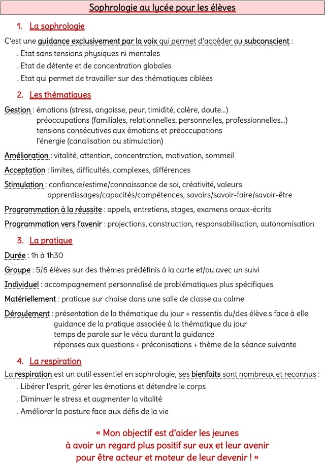 La Sophrologie en lycée est un accompagnement aussi utile que bénéfique aux jeunes dans le parcours pour préparer l’entrée dans leurs vies d’adultes responsables et épanouis !!